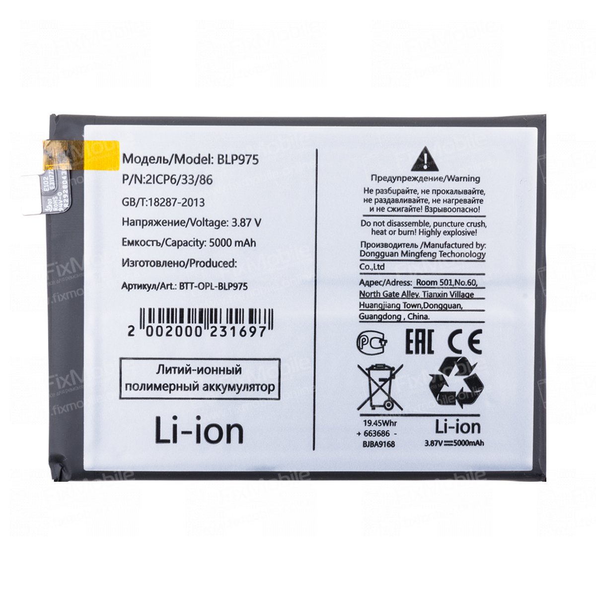 Аккумуляторная батарея для OnePlus Ace 2 BLP975